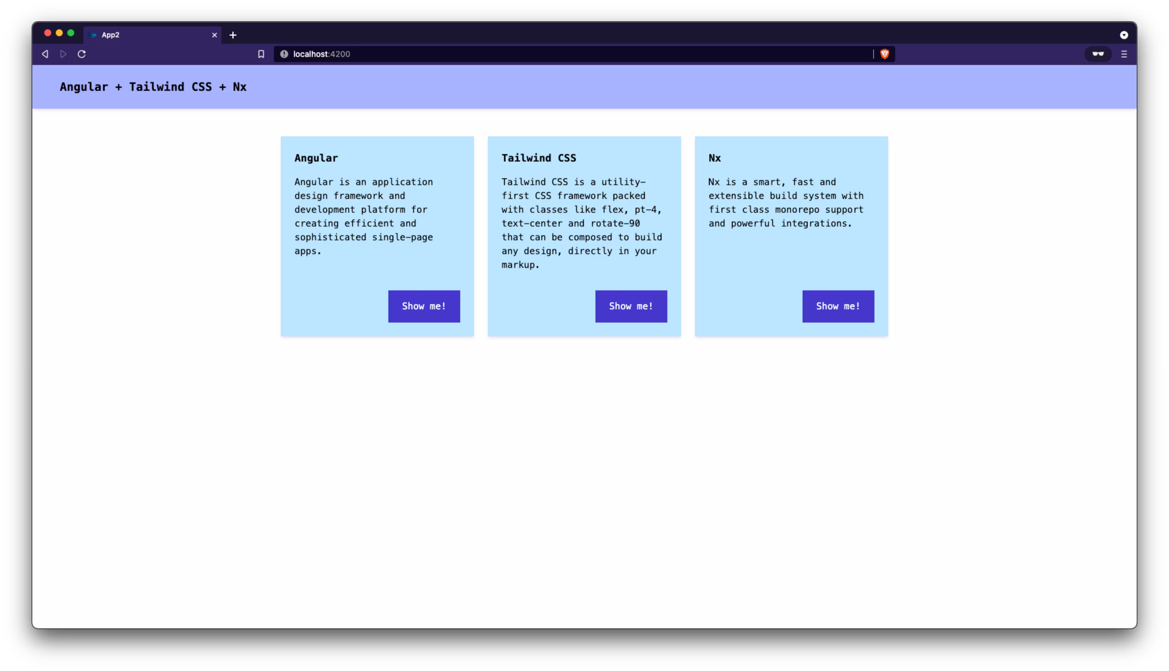 Please note that this blog post is not meant to be a Tailwind CSS or Angular tutorial. The purpose is to show how to use them together and how Nx can help to improve the developer experience and expand the native Angular capabilities when working with Tailwind CSS.